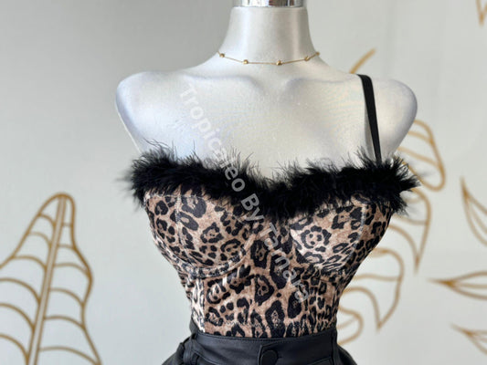 Regular price $35.99 USDRegular priceUnit price / perSale price $35.99 USDLeopard Print Faux Fur Trim Corset