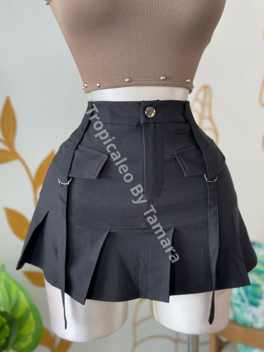 Black Cargo Mini Skirt