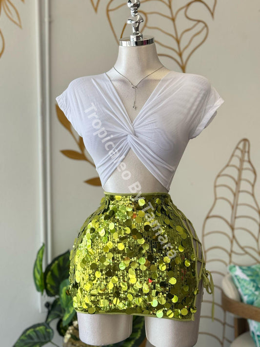 Lime Glam Ruched Skirt (falda)