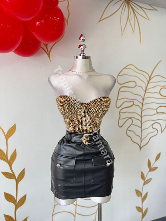 Regular price $45.99 USDRegular priceUnit price / perSale price $45.99 USDGolden Details Black Leather Skirt (falda)