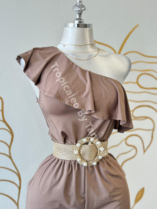Regular price $33.99 USDRegular priceUnit price / perSale price $33.99 USDPearline One-Shoulder Ruffle Jumpsuit