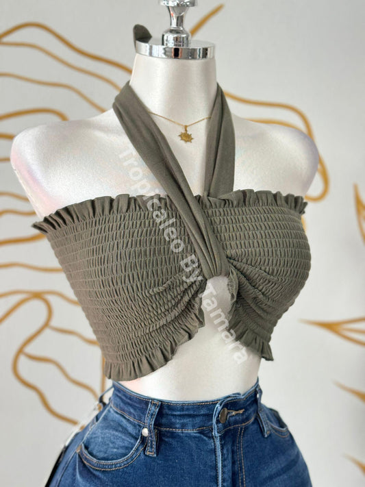 Versatile Smocked Bandeau Crop Top