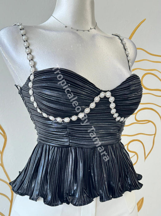 Pearl Trim Pleated Bustier Top (2 colores disponibles)