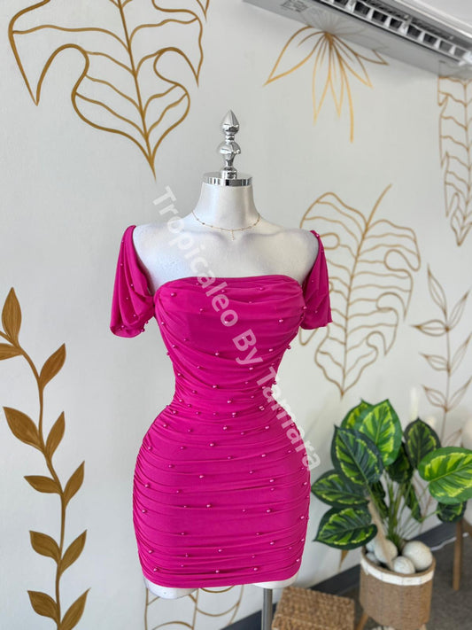 Regular price $43.99 USDRegular priceUnit price / perSale price $43.99 USDMagenta Pearl Off Shoulder Mini Dress