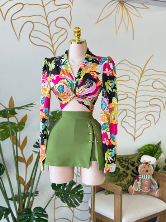 Olive Button Skort